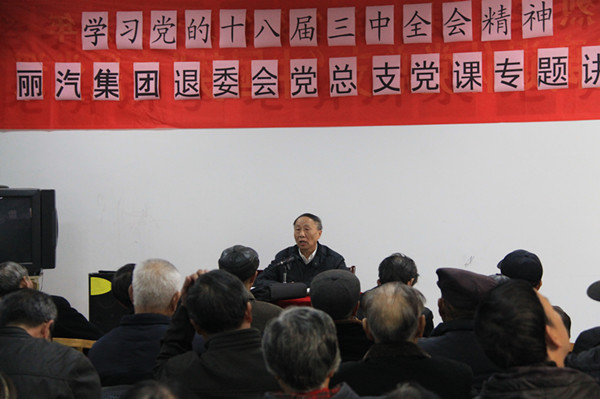 為把學習貫徹黨的十八屆三中全會精神引向深入, 11月28日麗汽集團離退委黨支部特邀請麗水黨??妈b清副教授給100余位黨員上了一堂以“學習十八屆三中全會精神”為主題的黨課,從中國的形勢、會議內容,行政體制改革和轉變政府職能等方面進行宣講,進一步深化了離退休黨員對全會精神的理解。