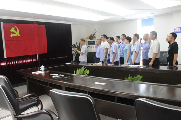 走進西站會議室,鮮紅的黨旗特別的搶眼。會議召開前,全體黨員面對黨旗舉起右手、手握拳頭,用鏗鏘有力的聲音,重溫入黨誓言,再一次體會到作為一名共產黨員的責任感和使命感。