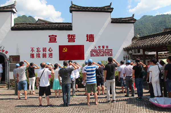 在有著“浙江井岡山”之稱的住龍鎮,大家頂著火紅的驕陽重走住溪村紅軍街、參加紅軍學校的學習、參觀了紅色文化廣場和浙江最早建立的一個縣級蘇維埃政府,回顧了粟裕、劉英率領的中國工農紅軍挺進師開創浙西南革命根據地的紅色歷史。參加活動的黨員還在宣誓墻前莊嚴地舉手宣誓,再一次重溫入黨誓詞,接受了一次黨性洗禮。