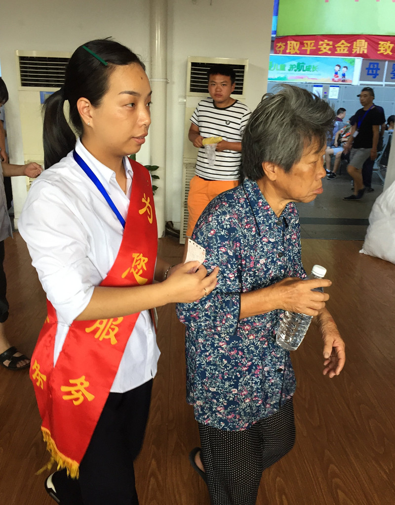 7月7日9:10左右,5號售票窗前,售票員與一位80多歲的老奶奶吃力的交流著,老奶奶自顧自的說著一口濃重的方言,可是在場的工作人員卻都沒聽懂。